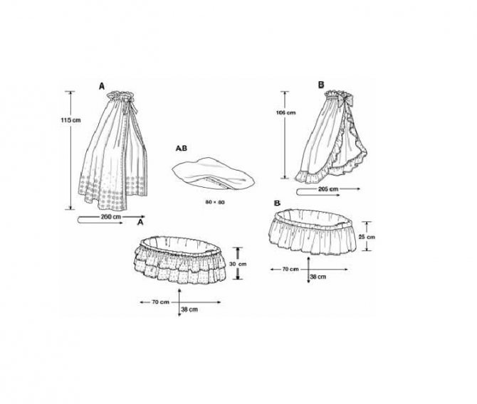 Чтобы купить готовое изделие, вам необходимо измерить параметры кроватки. Они зависят от длины штор, размеров спального места, высоты крепления и дизайна аксессуара. Длина «штор» зависит от вашего вкуса. Лучше всего покупать такой навес с длинными краями. Средняя длина – 160 см без декора. Перед покупкой измерьте длину от кровати до колец держателя, где они крепятся к стойке. Ширина зависит от размера кровати. Желательно купить модель пошире, а не точно по размерам колыбели.