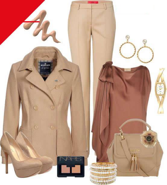 Палитра одежды не должна включать вызывающе и ультрамодные цвета. Пусть это будет базовый набор и благородные оттенки, которые не выходят из моды: , яичная скорлупа, бежевый, черный, и так далее.