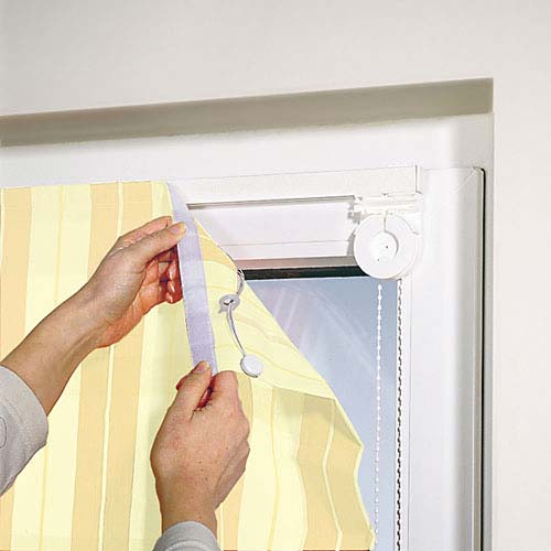 - Распределите штору так, чтобы верхний край выровнялся с линией.