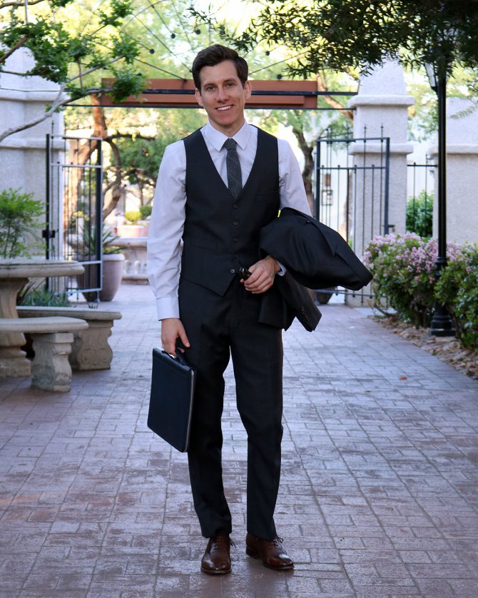 А теперь соберем все вместе, в единый костюм-тройку. Перед вами идеальный ансамбль, ношение которого привлечет к вам правильное внимание. Именно так и должен выглядеть мужчина.