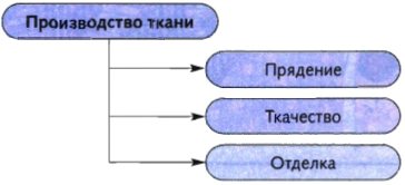 Чаще всего для изготовления одежды используются текстильные материалы — нитки и ткань (текстиль). Их производство — сложный процесс, состоящий из трех этапов: прядения, ткачества и отделки (рис. 9).