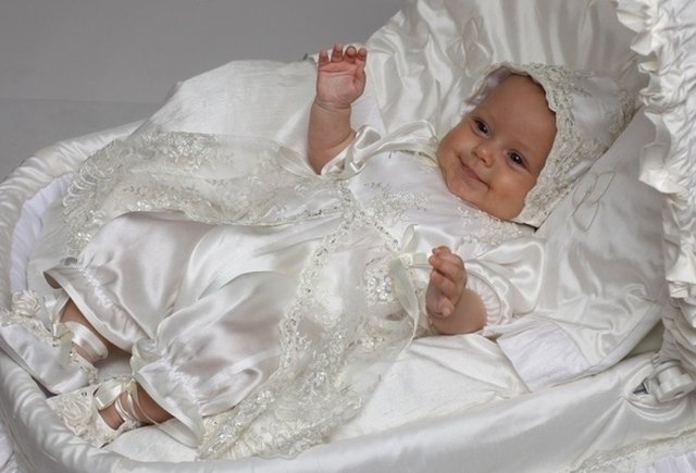 Если же хотите красивую крестильную одежду для малыша, перед вами открывается огромный ассортимент. Церемония крещения пройдет особенно торжественно и празднично с изысканными крестильными нарядами и аксессуарами для новорожденных. Производители предлагают комплекты для крещения из шелка с кружевом и вышивкой, камнями Сваровски, жемчугом.