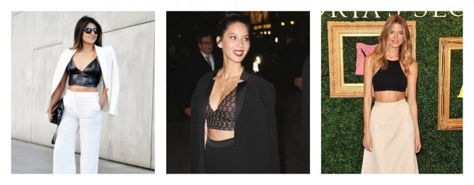 - В классическом образе им можно украсить брючный костюм с высокой посадкой, впрочем, также, как и юбку. Чем более плотный будет материал бралетта, тем более деловым будет выглядеть ваш образ. Идеально подойдут бархат, кожа или хлопок.