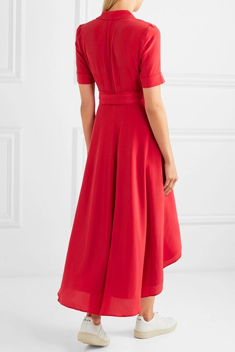 Комфортное платье-халат может стать практичным и стильным элементом гардероба. Его можно сочетать с кедами и кроссовками, но и с обувью на каблуке оно смотрится неотразимо. Для летнего образа можно выбрать как хлопковое, так и шелковое или льняное платье-халат. Самая трендовая длина – миди.