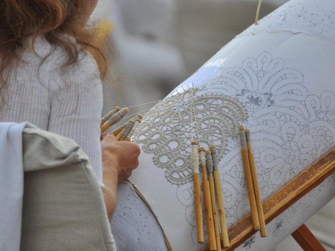 Великолепные шедевры создаются при помощи специальных приспособлений. Это искусство зародилось очень давно и по сей день неизменно популярно. Вот образец ручного кружевоплетения: