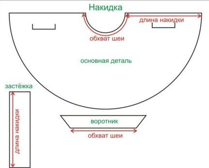 Достаточно определить форму выреза горловины, чтобы было комфортно тому, кого собираются стричь. Но, если без выкройки никак, то чертежи можно взять от обычной юбки «солнце-клеш» или «полусолнце». Главное, чтобы было свободно рукам под накидкой.