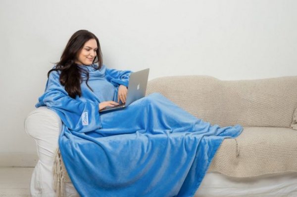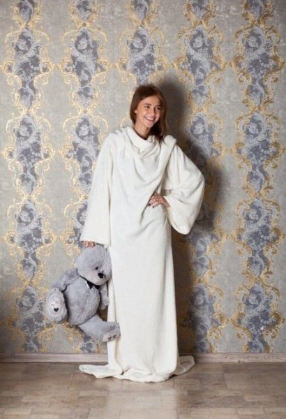 Далеко не новый тренд среди любителей всего оригинального – плед с рукавами (как на фото) выбирают все больше людей. Это, без преувеличения, изобретение завоевало многих, и те, кто уже его имеет, не представляет уже как жили без него раньше.
