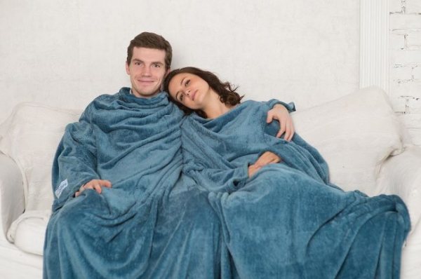 Материалы: микрофибра и микроплюш. Среди вариантов пледа от производителя хотелось бы выделить модель для двоих человек. Это плед с рукавами для двоих имеет 4 рукава и увеличенные габариты. В нем можно удобно устроиться на диване в компании любимого человека. Насколько удобно ходить парой в таком – непонятно.
