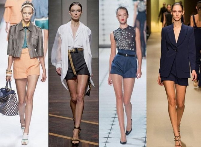 Не менее практичны и удобны в носке женские шорты. Бриджи, укороченные до уровня выше колена, изумительны в своих новых фасонных решениях текущего года с использованием завышенной талии с присобранной гармошкой тканью и опоясывающим ее широким поясом. Внешне это напоминает нечто вроде затянутого веревкой мешочка, но сам образ отнюдь не смотрится мешковато.
