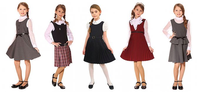 При подборе школьной формы нужно помнить об общепринятых указаниях. Школьный сарафан должен быть темного оттенка, без ярких или блестящих элементов. Традиционными тонами для такой одежды будут: серый — этот оттенок очень дружелюбный и хорошо комбинируется с другими цветами.