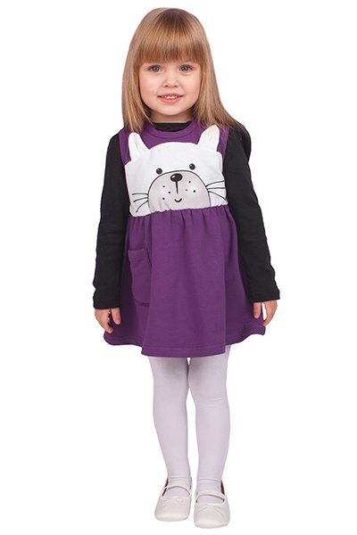 Прямой сарафан на малышке будет либо задираться наверх, либо ограничивать крошку в движениях. Такая модель подойдет девчонкам среднего возраста. Подобные наряды приучают девочку вести себя степенно и женственно.