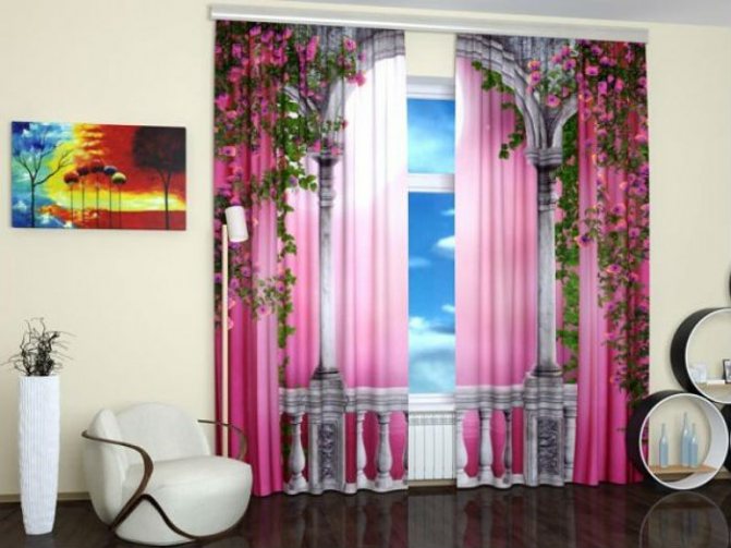 Принт нужно выбирать в соответствии со стилем, в котором оформлено помещение. Благо, в этом отношении сегодня нет недостатка. Полоска для прованса, клетка для кантри; порталы, колонны, террасы с павлинами — классика. Персонажи любимых мультфильмов — идея для детской; сочные, роскошные 3D шедевры — в гостиную. Фотошторы можно приобрести в готовом варианте, либо выполнить на заказ.