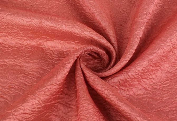 Эффект крэш или жатости достигается за счет специальной обработки текстильного полотна. Собранное в складки полотно помещают под пресс, где оно подвергается воздействию высоких температур. Обычно закладывают продольные складки, но форма и глубина могут быть любыми. В результате получают материал со сложной фактурой. Что примечательно, жатку легко сделать даже в домашних условиях.