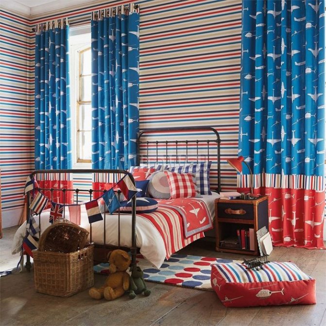 - Детская. Текстиль в этой комнате должен быть натуральным, дышащим, но практичным. Подойдет лен, хлопок с небольшой примесью синтетики. Благодаря этому шторы не помнутся, а также увеличится срок эксплуатации.