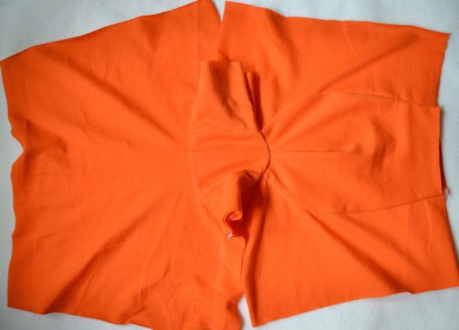 - На обеих центральных частях делают выточки внизу. Для этого их складывают пополам вдоль и делают швы.