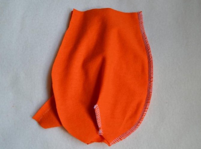 Нижние срезы изделия обрабатываем швом и подгибаем (0,7 — 1,0), а верхний срез в большую подгибку, шириной два сантиметра.