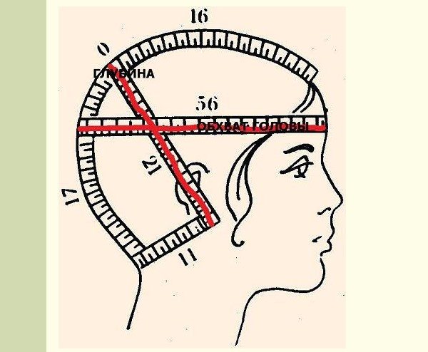 - Глубина шапочки. Расстояние от начала мочки уха до середины темени. Благодаря этим меркам определяется размер в соответствии со стандартными нормами.
